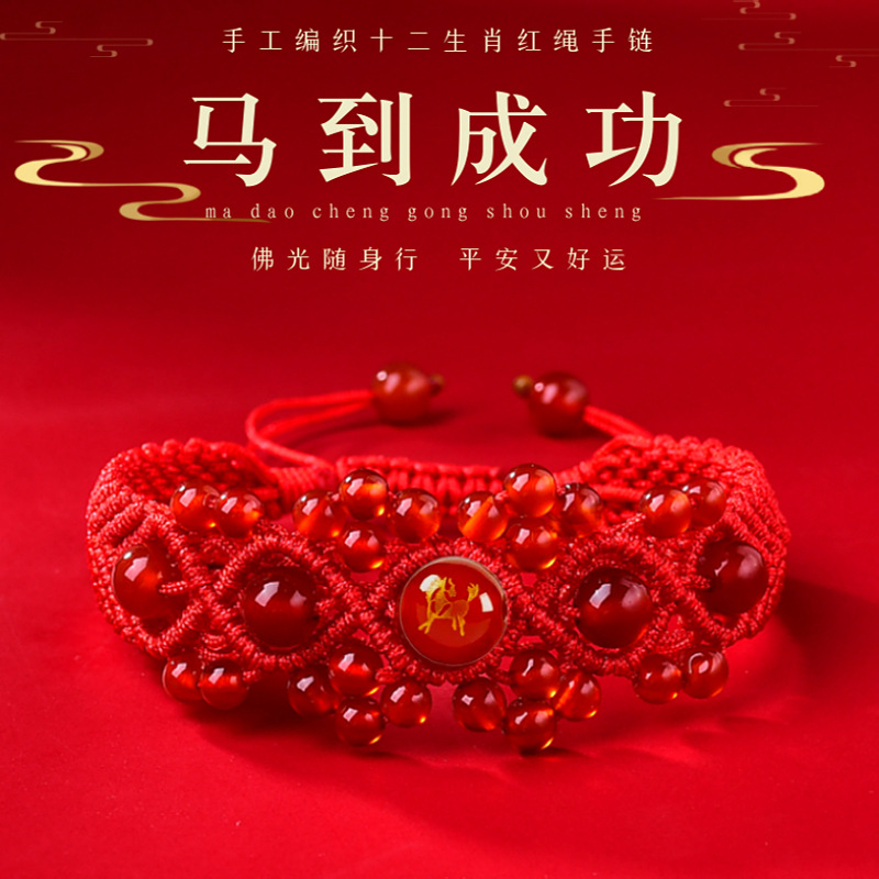 2026 Year of the Horse, Zodiac Year, Red Rope Bracelet for Women, Hand-Woven Red Agate Twelve Zodiac Bracelets for Men, Good Luck