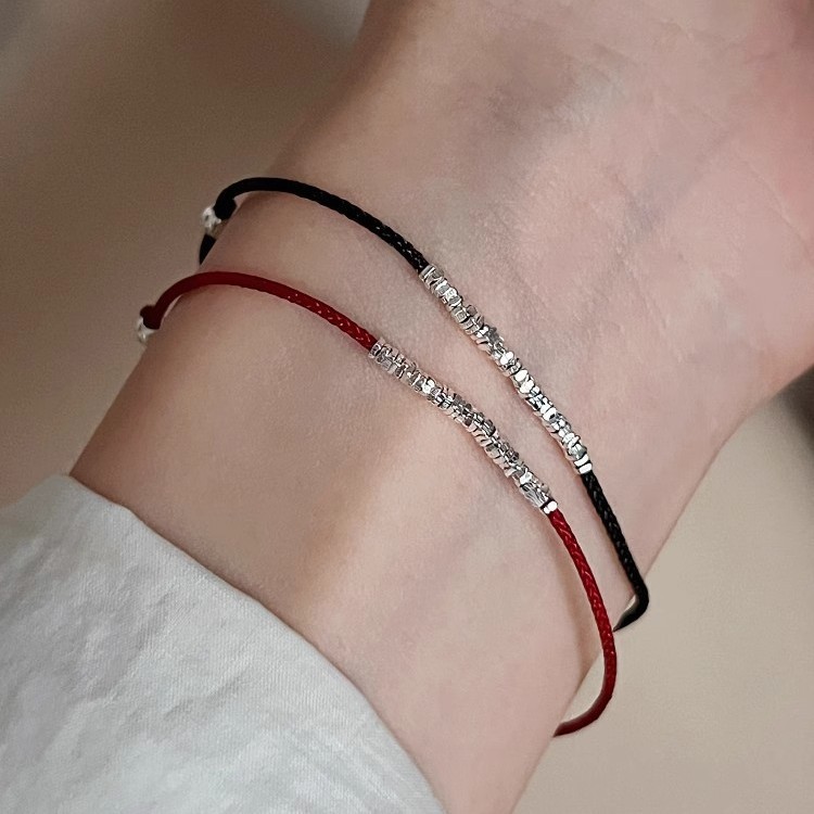 Broken Silver Red Rope Bracelet for Women, Niche Design, Accessible Luxury and High-End, New Chinoiserie Elegant, Versatile National Style Black Rope Anklet
