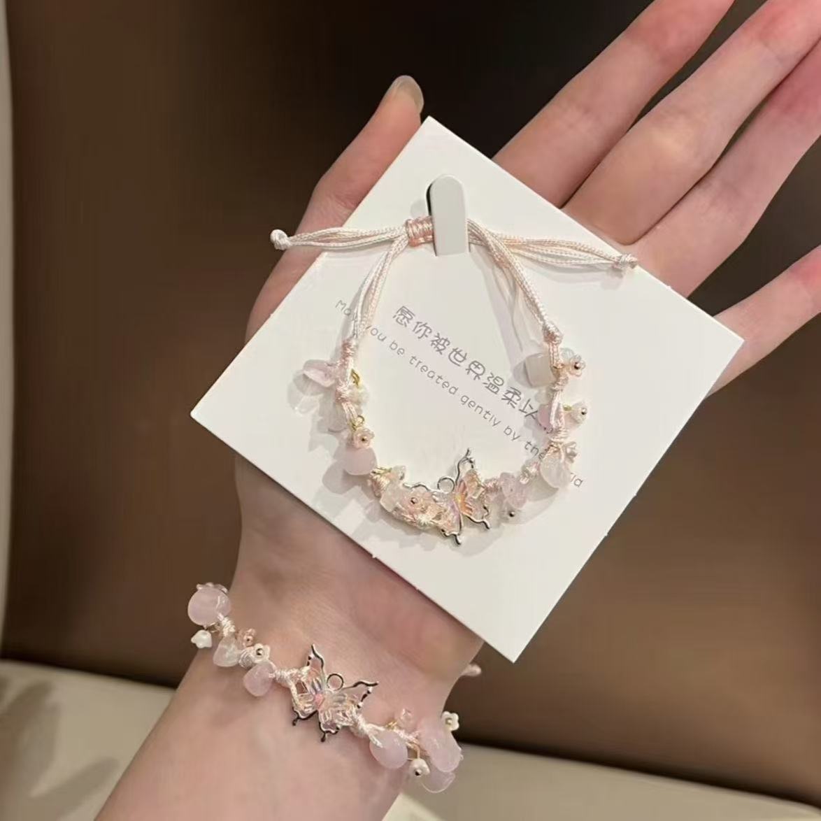 Summer Butterfly Woven Bracelet Girls' Sweet High-end Handmade New Arrival Hand Rope Girlfriend Tanabata Gift for Niche