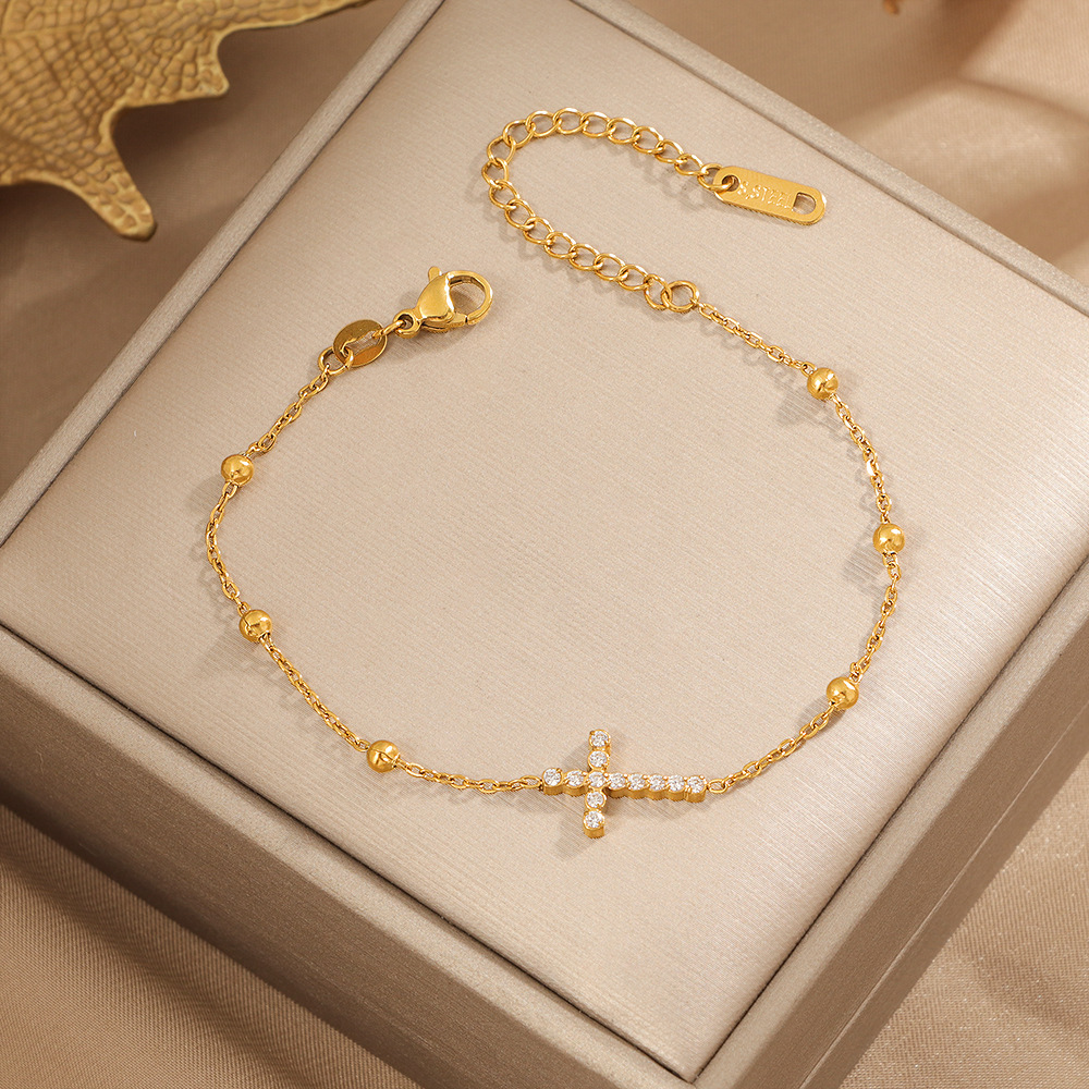 Amazon's Popular Titanium Steel Cross Women's Bracelet, High-End Zircon Light Luxury Bracelet, Non-Fading Accessories, Exquisite
