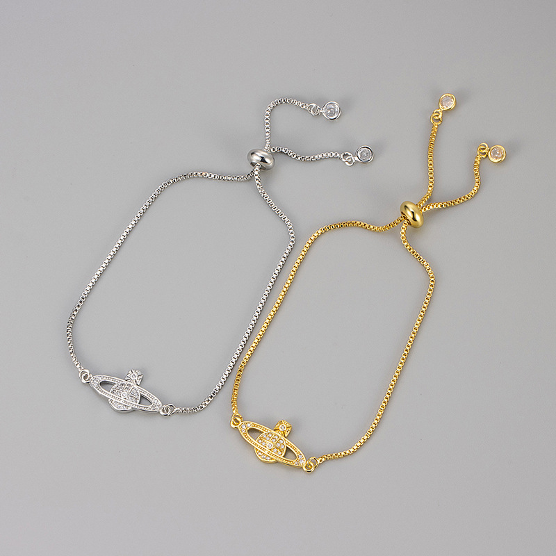 2024 New Micro-inlaid Saturn Planet Brilliant Bracelet High Chain Simple Personality Women's Fashion Europe and America