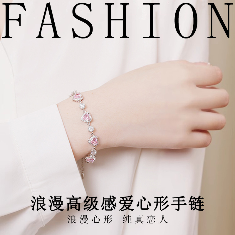 Romantic Pink Love-shaped Bracelet Female Niche Design for Girlfriend's Birthday Gift Simple All-match High-end Jewelry