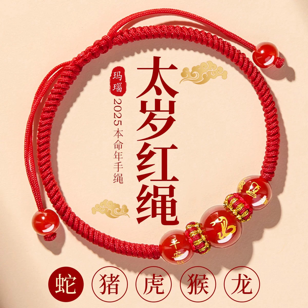 Red String Bracelet for Women, Zodiac Tai Sui Amulet, Woven for Good Luck in 2025 Year of the Snake, Auspicious Accessory for One's Zodiac Year, Red String Bracelet