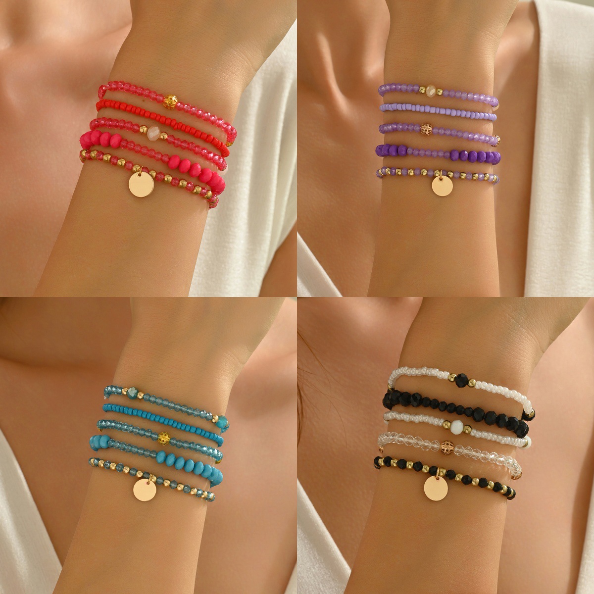 Cross-border fashion simple wind pearl CCB beaded elastic women's kraft paper card bracelet set of 11