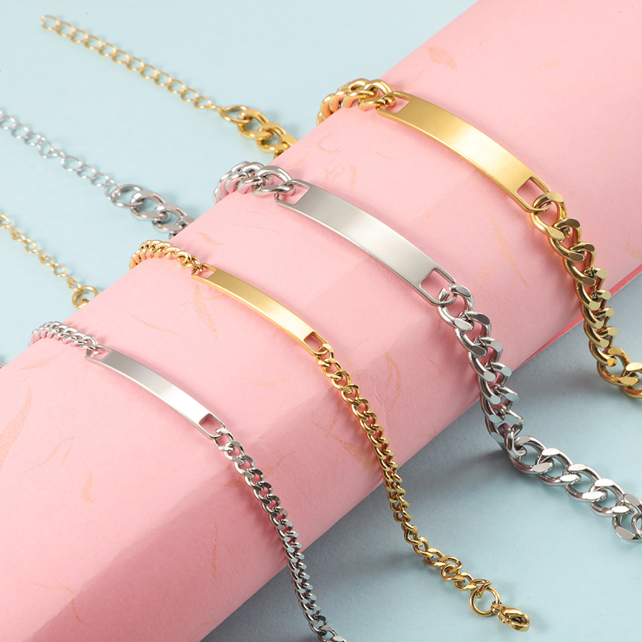 Cross-border Stainless Steel Couple's Curved Brand Bracelet Women's Fashion All-match DIY Engraving Simple Personality Long Handpiece