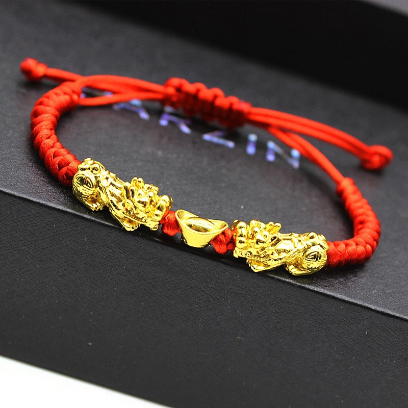 Golden Lucky Pixiu Red Rope Bracelet Women's Ethnic Style New Year's Gift Boys Trendy Jewelry Wholesale Red Bracelet