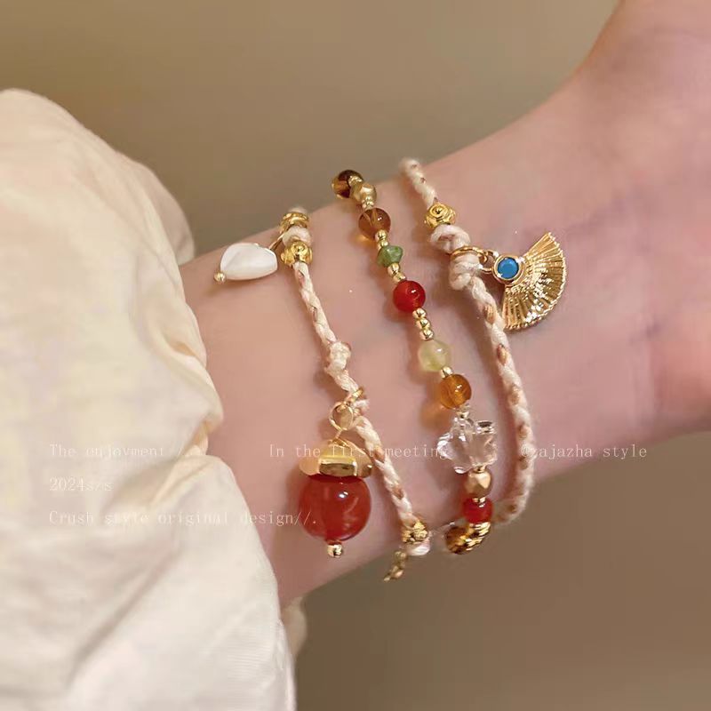Ethnic Style Fan-shaped Woven Bracelet Women's 2025 New Retro Style Elegant Hand Rope Light Luxury Niche High-end Jewelry
