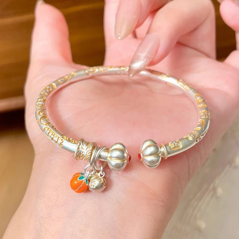 White Copper Double Pumpkin Gold-Plated New Chinese Style Bracelet for Women, Wholesale Exaggerated Bracelet Model