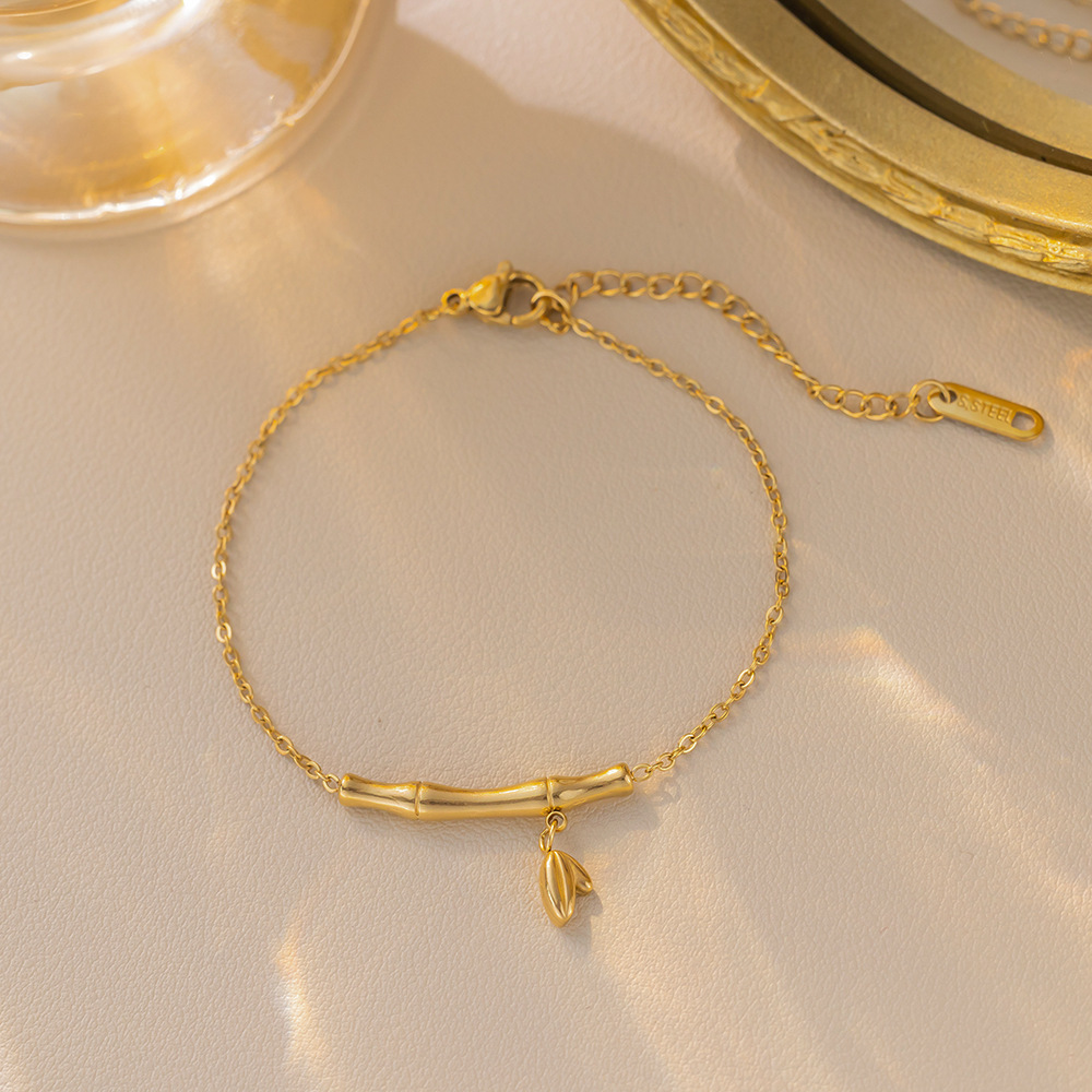 New Chinese Style Exquisite Bamboo Titanium Steel Bracelet for Girls, Fashionable and High-End, New Trendy Anklet That Will Not Fade