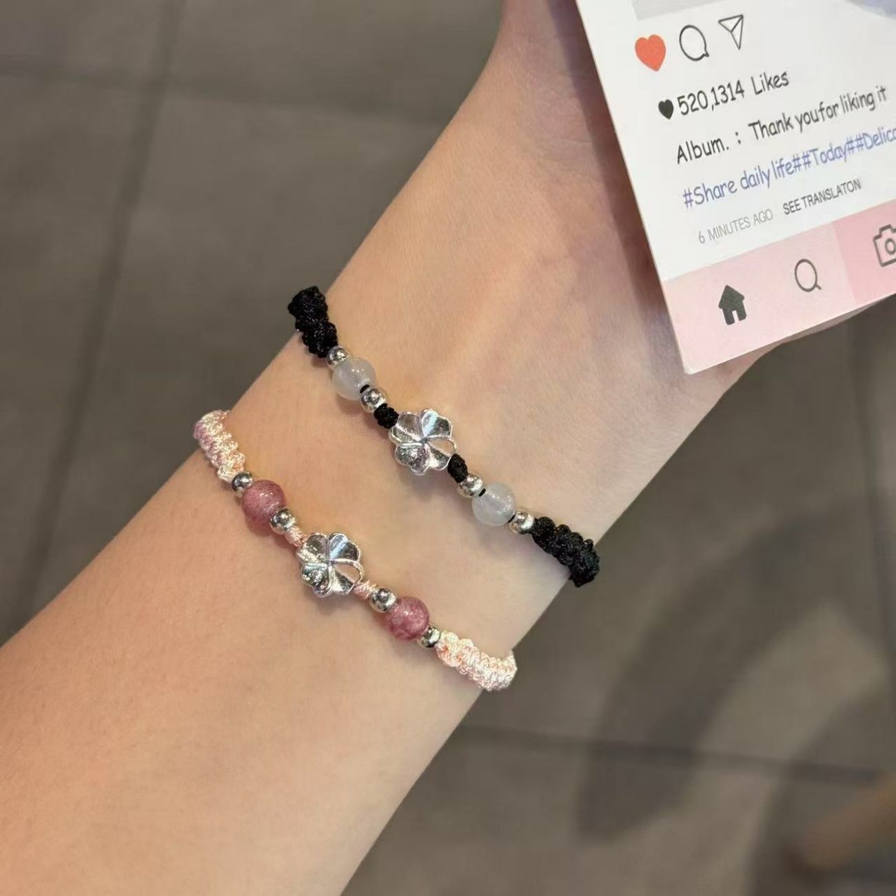 Lucky Four-Leaf Clover Braided Bracelet for Women Ins Niche Simple Student Gift Bestie Bracelet Female Summer Sweet Bracelet