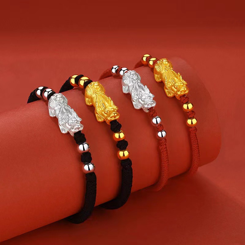 New Lucky Pi Xiu Hand Rope Couple Bracelet Female Male Silver Plated Hand Woven Rope Finished Red Rope Wholesale