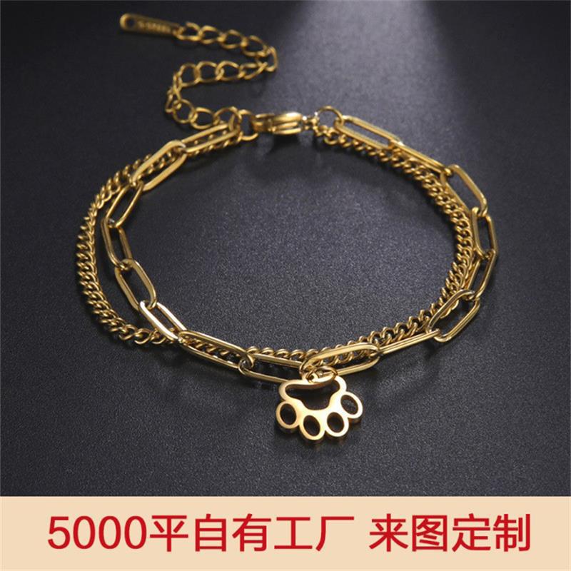 Cross-border European and American Bracelet Memory Footprint Girl Spice Girl Double Layer Gold Bracelet Girlfriend Couple Gift