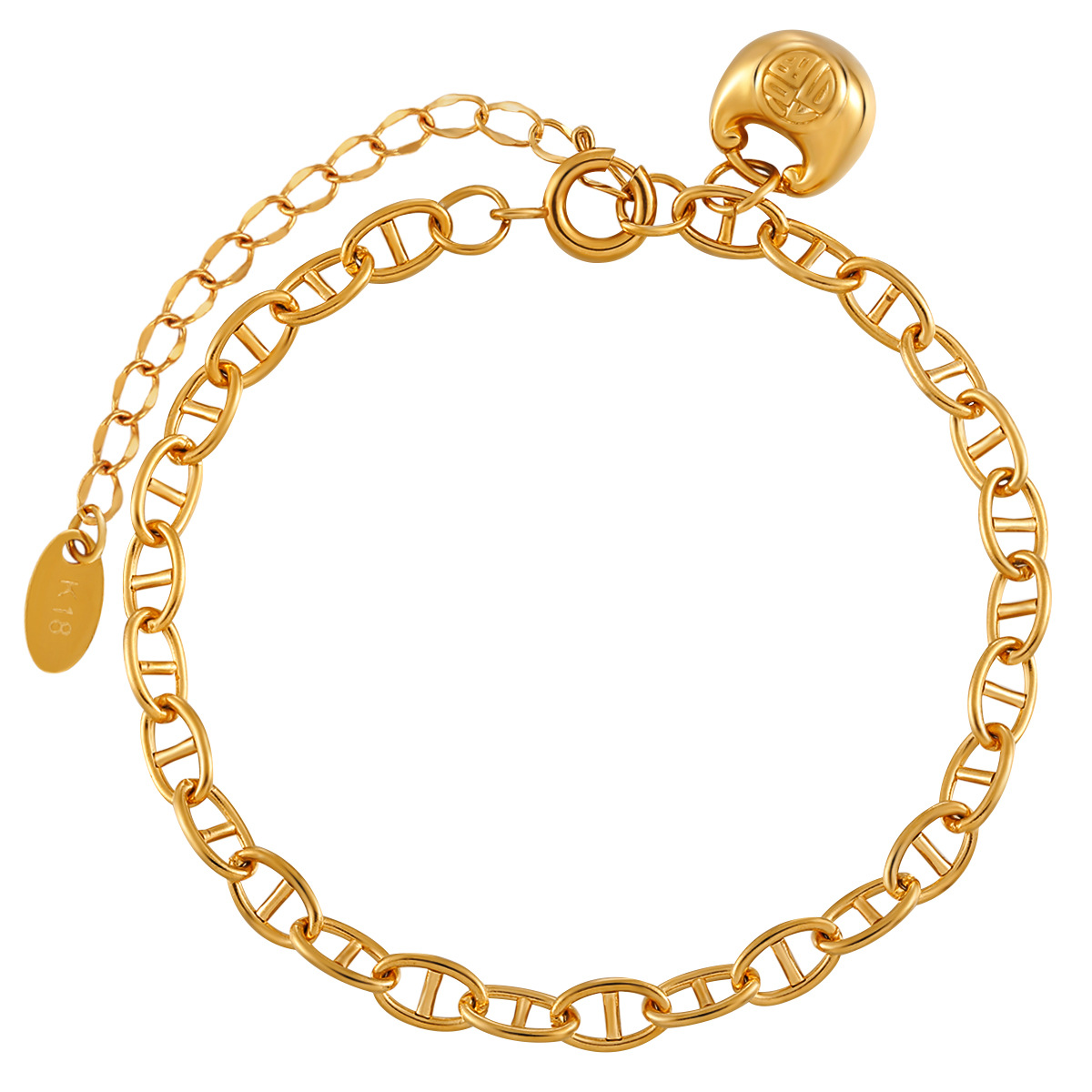 Korean-Style Titanium Steel Fashion Fortune Character Chubby Bracelet for Women, Heavy Craftsmanship, Unique New Ins High-End Gold Jewelry