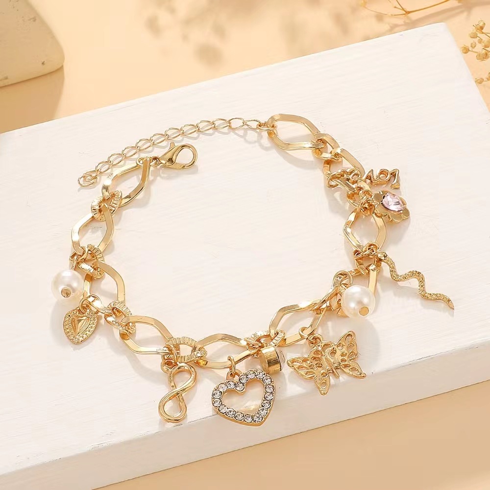 European and American cross-border exaggerated niche ins alloy bracelet female fashion personality chain tassel multi-element bracelet wholesale