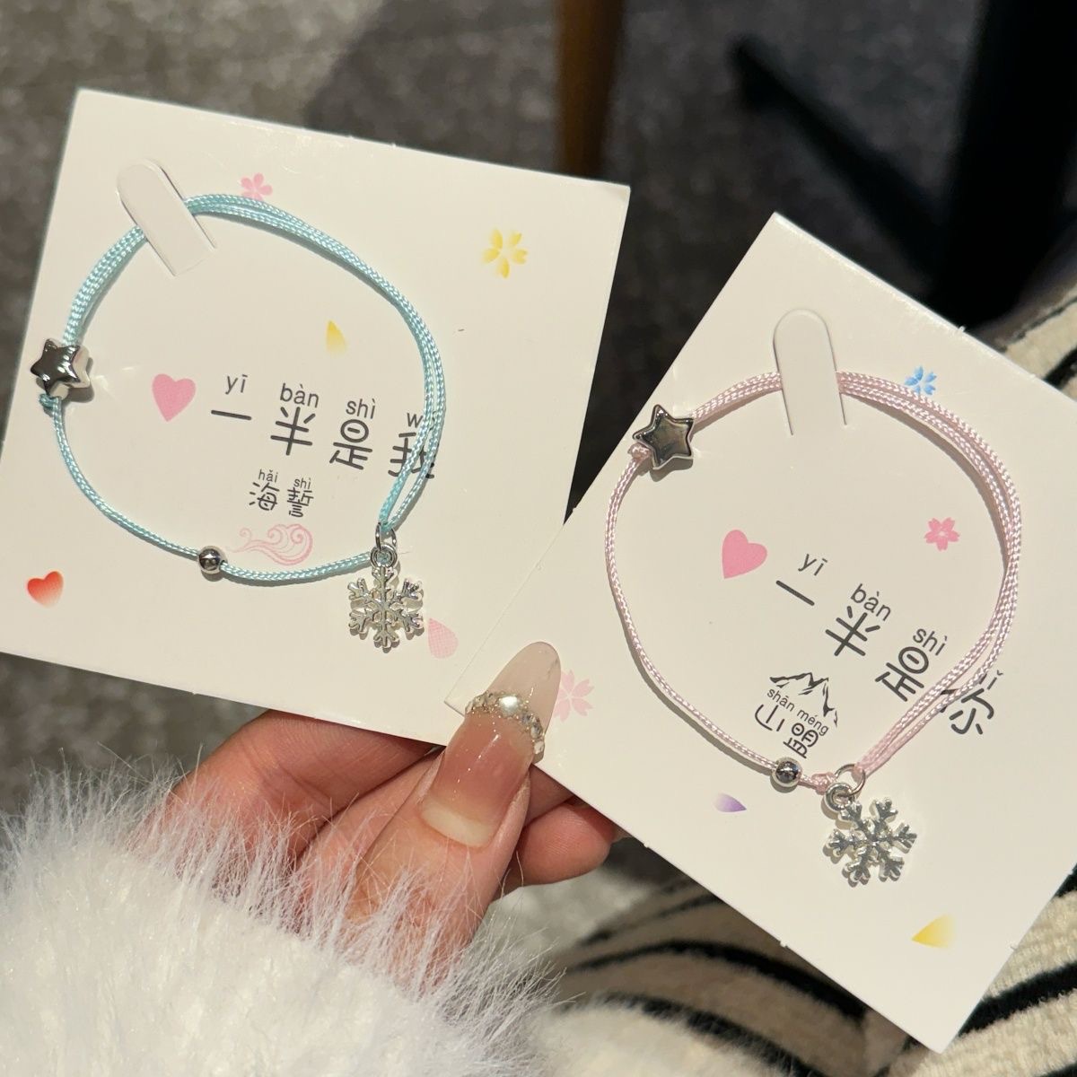 Cool and Sweet Girly Snowflake Star Bracelet Braided Couple Bestie Bracelet Christmas Winter Versatile Bracelet