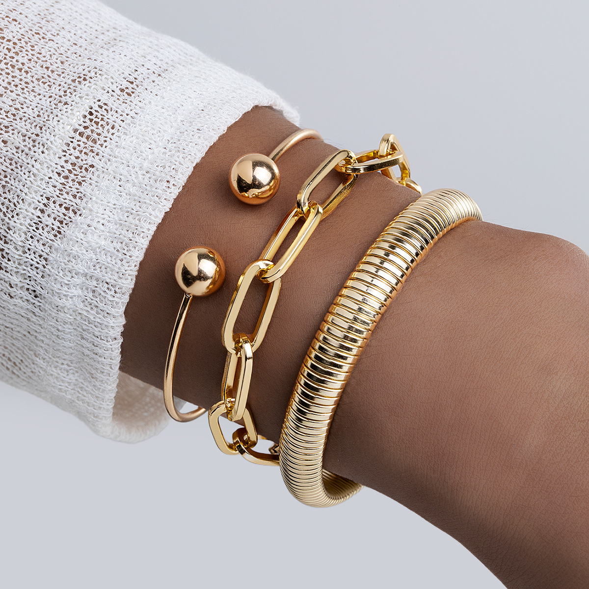 European and American Cross-Border Fashion Design Threaded Snake Bone Metal Bracelet Paper Clip Style Adjustable Bracelet Three-Piece Set for Women