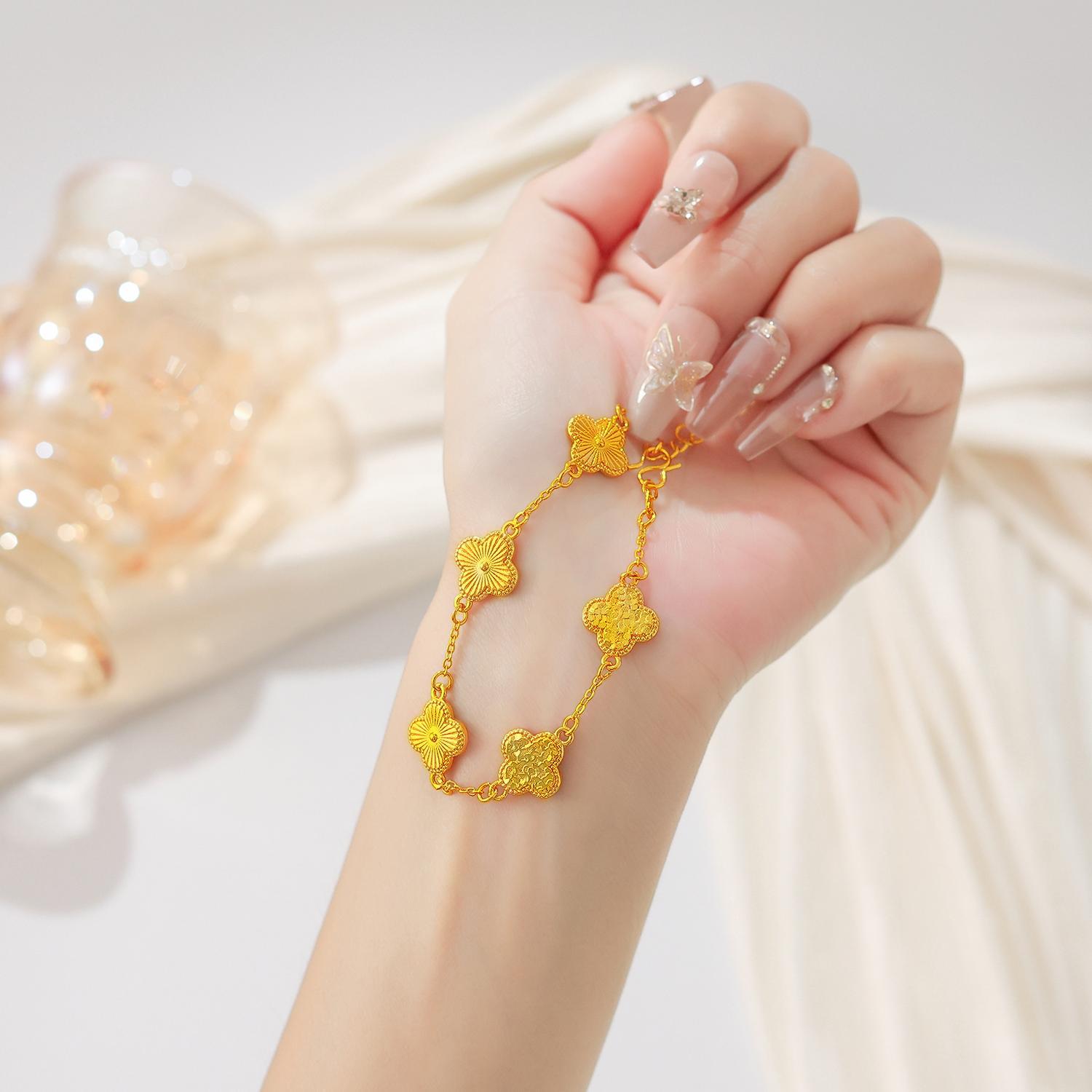 Ice Crushed Clover Bracelet for Women, Fashionable Double-Sided Design, Niche Style, Light Luxury Versatile Jewelry, Gift for Girlfriend