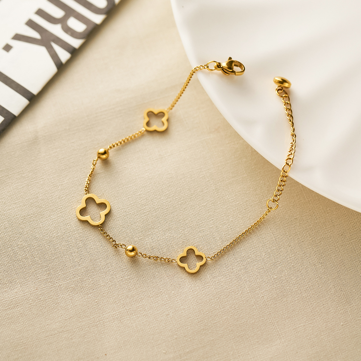 Wen Jian Stainless Steel 18k Gold Hollow-out Four-leaf Clover Bracelet Women's High-grade All-match Fashion No Fading New Product