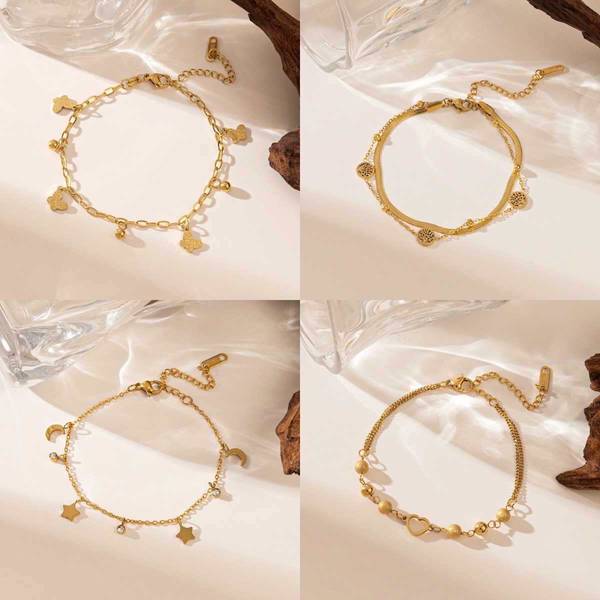 Cross-Border Jewelry Wholesale Non-Fading Titanium Steel Bracelet Fashionable Simple Retro Ins Cut Out Heart Gold Bead Bracelet for Women