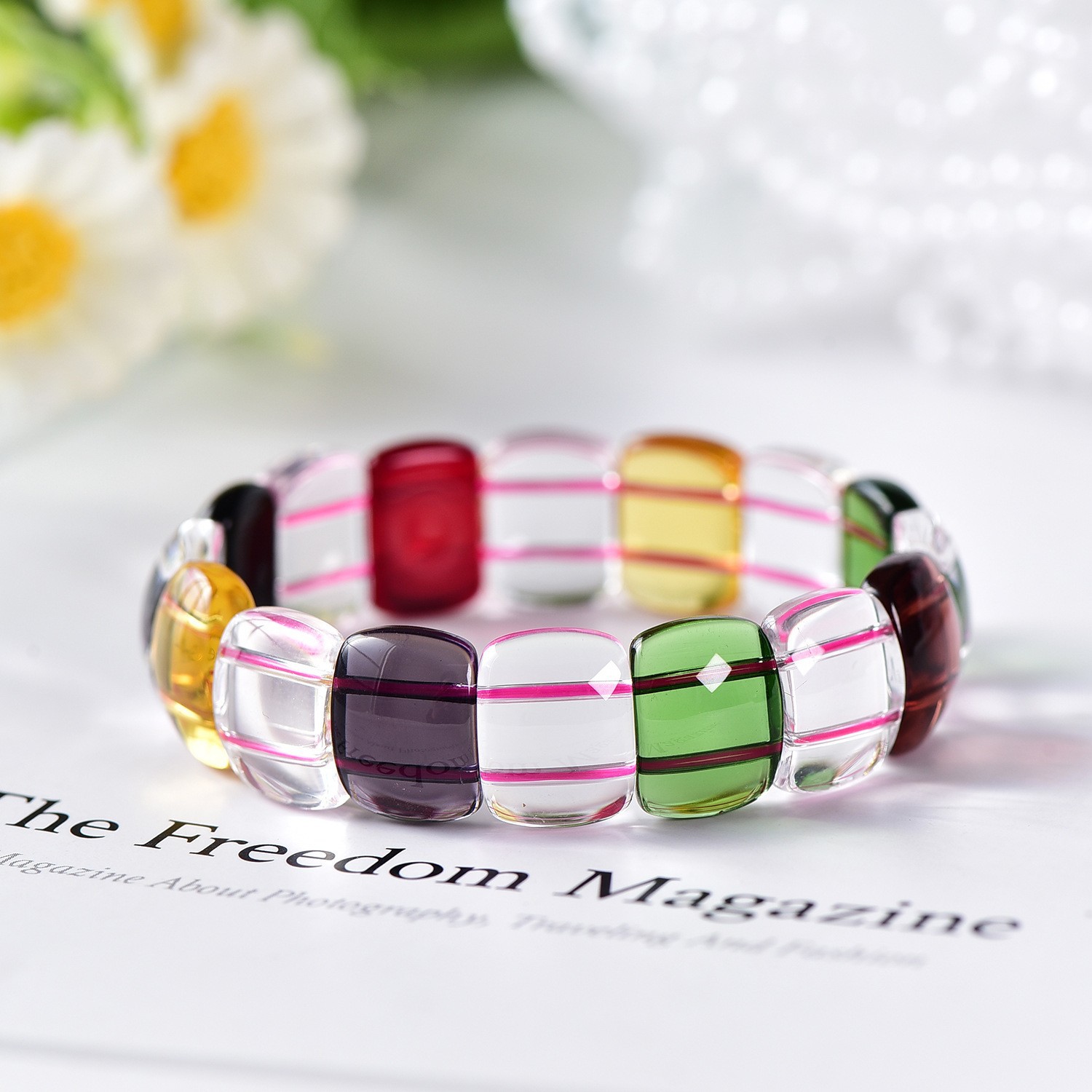 Factory wholesale ethnic multi-color colorful glass bracelet crystal transparent square hand brand women's fashion hand jewelry