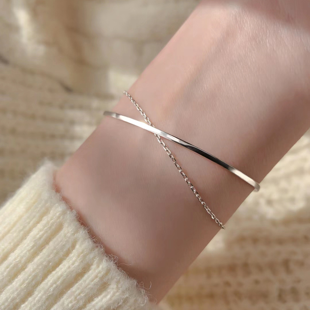 Double-layer bracelet for girls ins cold style niche design fashion simple exquisite half bracelet half chain
