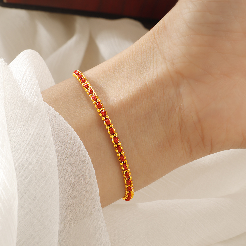 Zodiac Year Titanium Steel Ball Gold Braided Red Rope Bracelet for Girls New Chinese Style Hand Jewelry Light Luxury Exquisite Red Rope Bracelet