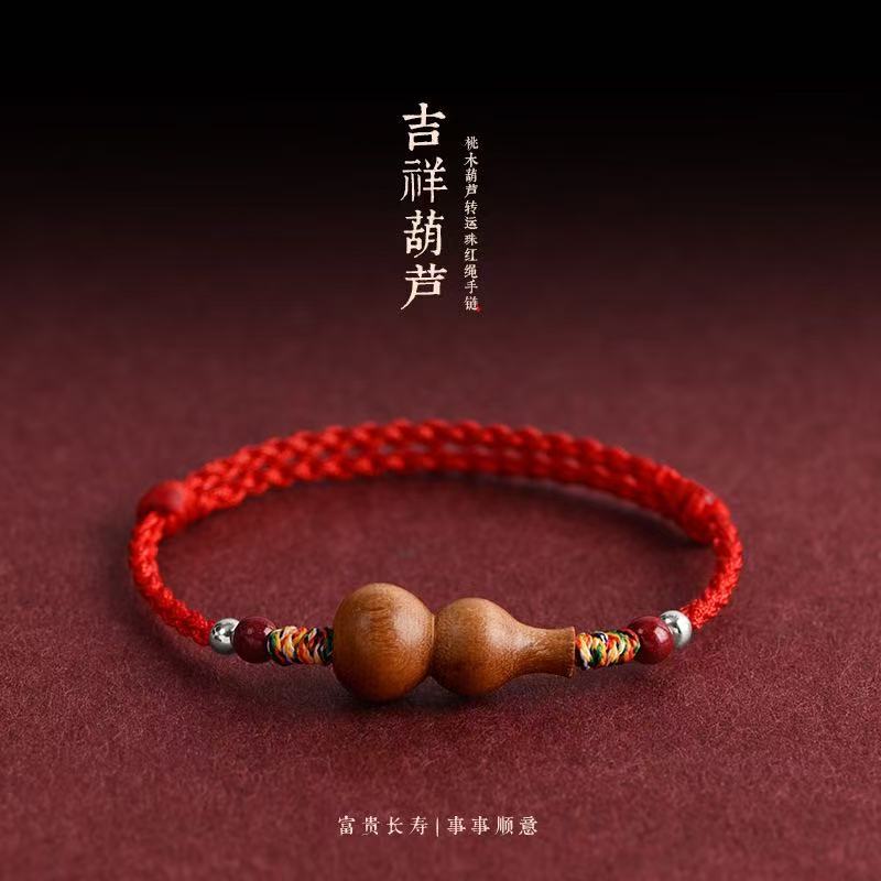 Natural Old Peach Wood Gourd Red Rope Bracelet for Girls in Their Zodiac Year, Safe Bracelet, Cinnabar Bracelet, Woven Gift for Men and Women