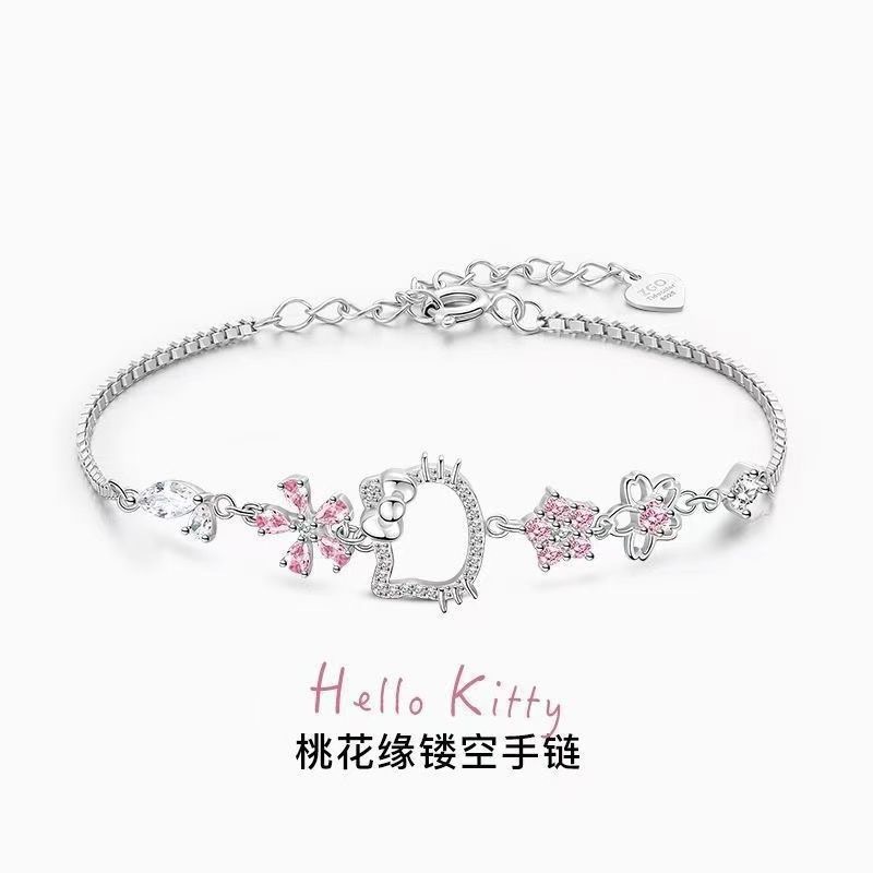HelloKitty Joint Peach Blossom Bracelet 925 Silver Sweet Girly Light Luxury Ins Cute Birthday Gift