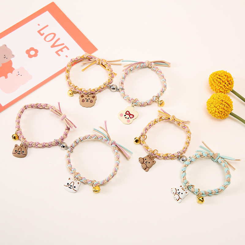 Niche Design Girly Heart Mixed Color Bracelet Bear Rabbit Alloy Cartoon Hair Rope Couple Student Dual-Use Hand Rope