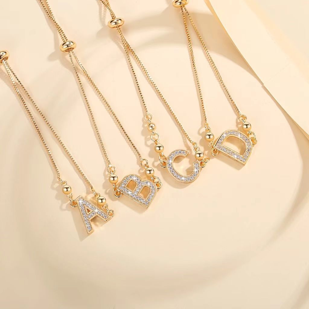 26 Letter Bracelet Women's Fashion Niche Design Copper Gold Plated ABCD Zircon Push Pull Bracelet Bracelet Wholesale