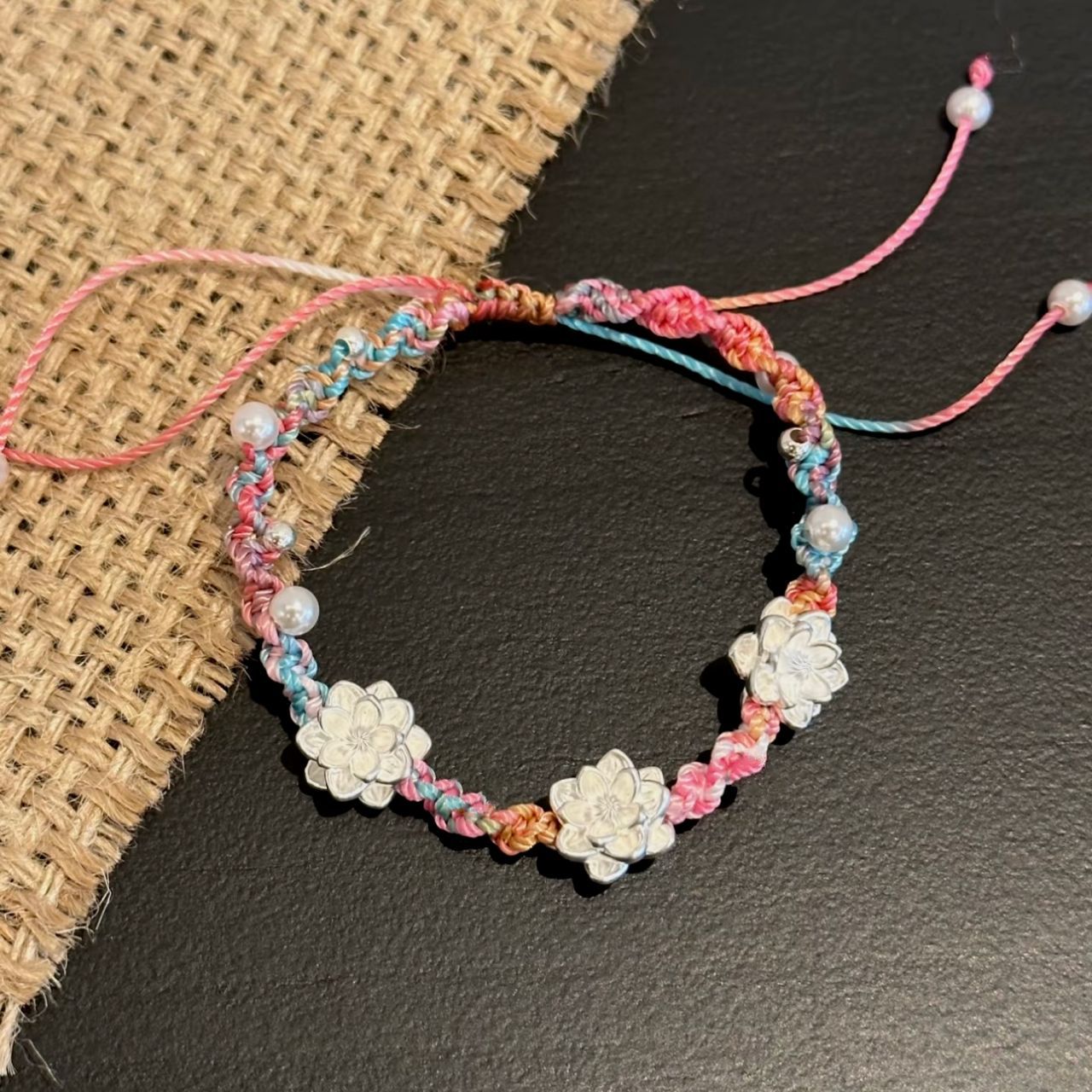 Sansheng Lotus Antique Lucky Lotus Lotus Colorful Pauline Hand Rope Hand Woven All-match Colorful Rope Woven Girl Jewelry