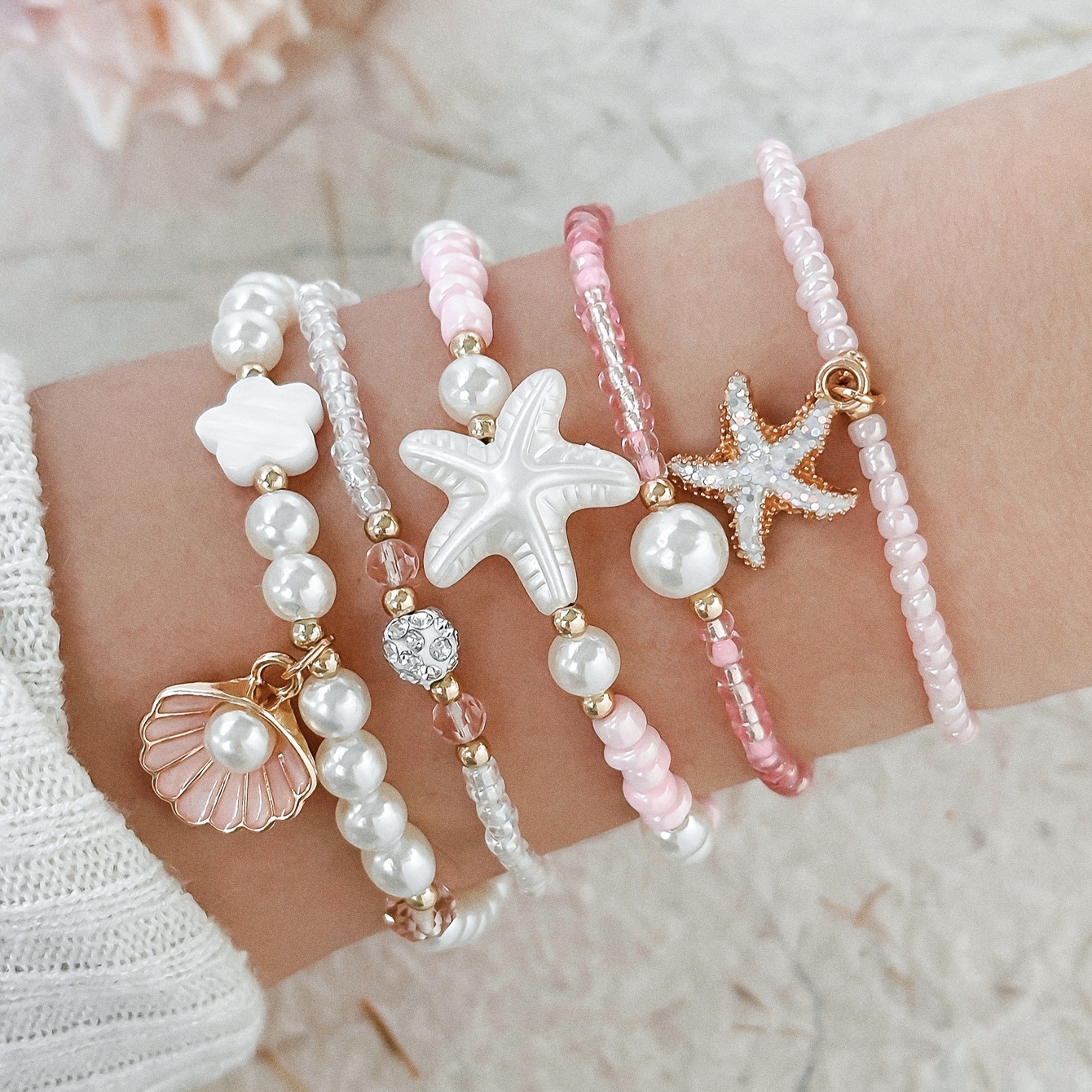 New Cross-Border Sweet Girl Rice Bead Braided Bracelet Summer Versatile Beach Shell Starfish Bracelet Pearl Women