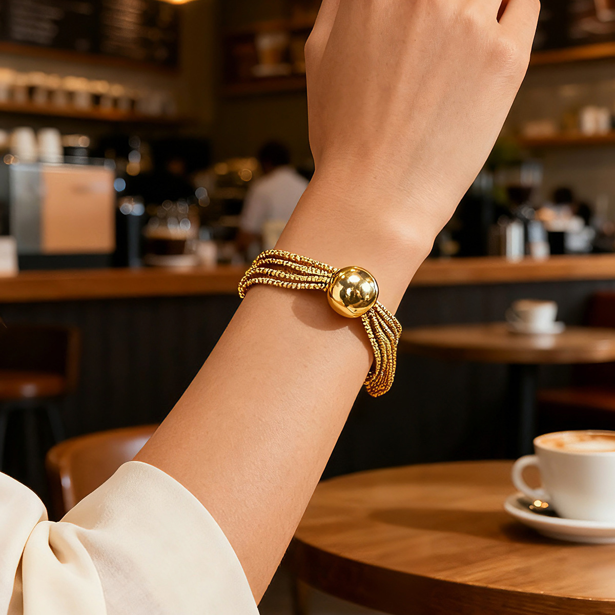 Cross-Border Exaggerated Women's Multi-Layered Chain Stacking Bracelets, Exquisite Niche Geometric Ball Personalized Chain Bracelets Wholesale