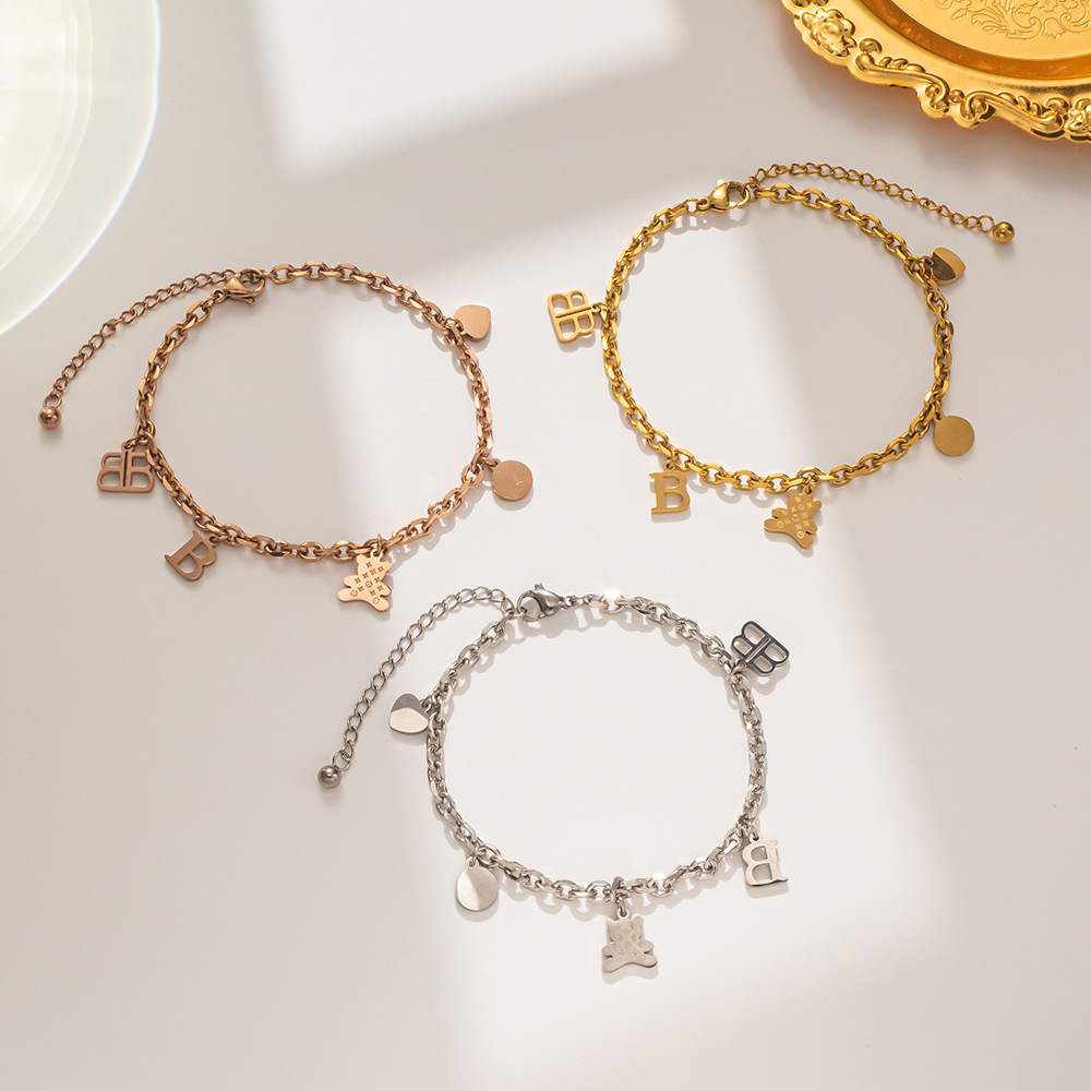 Titanium Steel Non-Fading Hip-Hop Bear Bracelet for Women Summer Ins Niche Design Simple Stylish Cold Style Girls' Hand Accessories