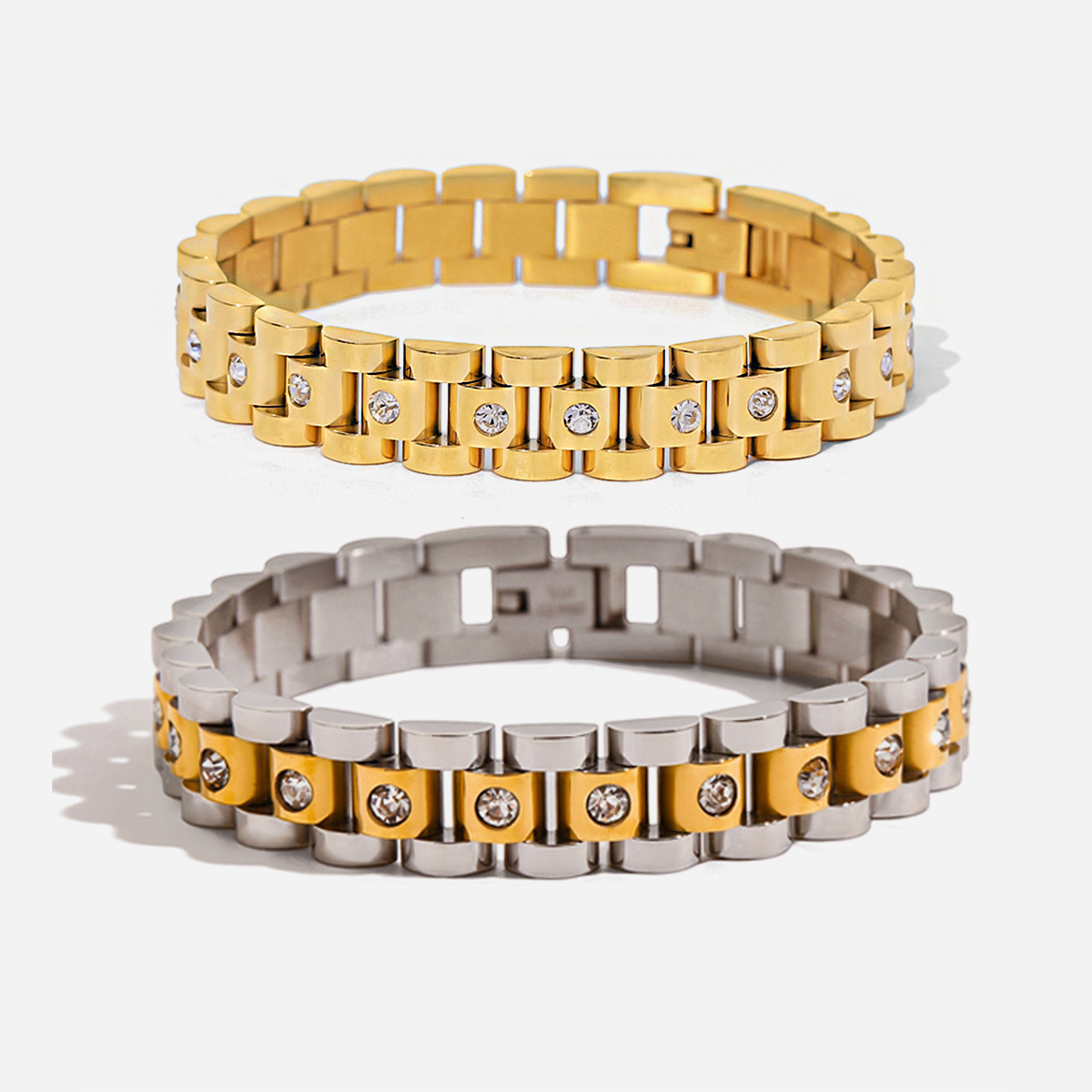 Retro Hong Kong style exquisite bracelet girls 18k gold round white rhinestone watch chain does not fade jewelry wholesale