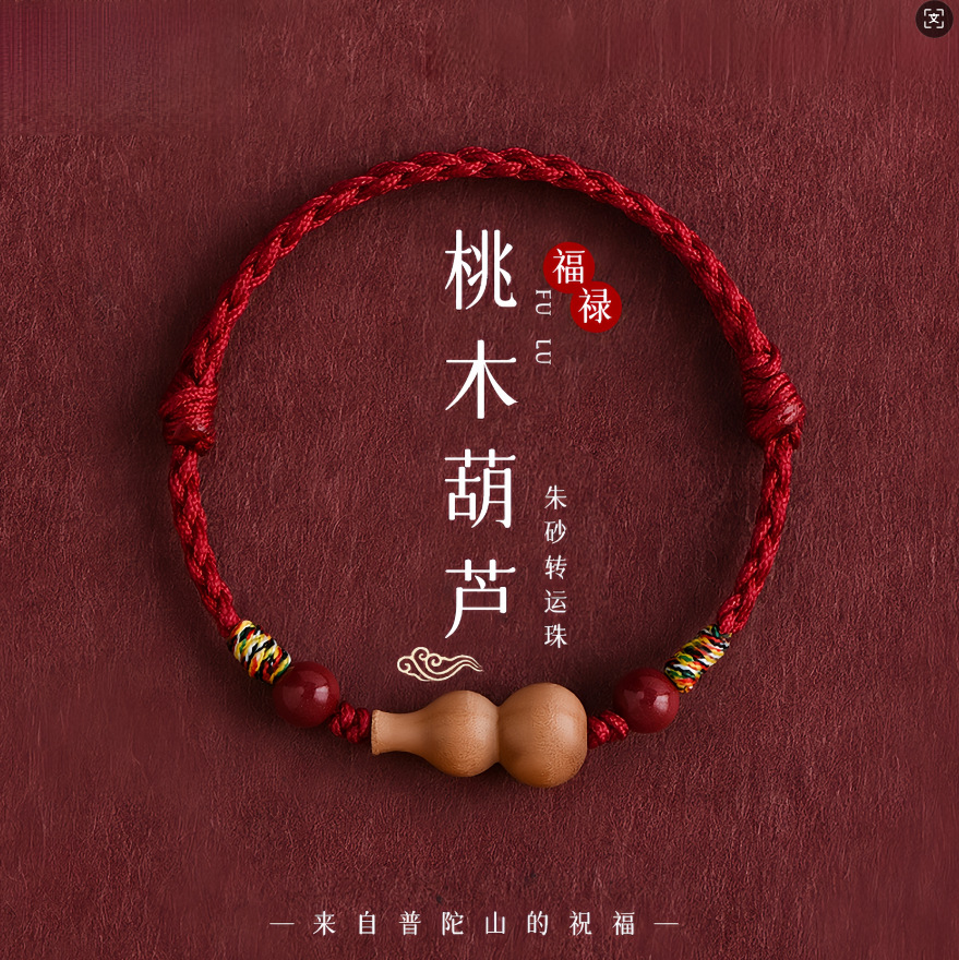 Natural Taishan Old Peach Wood Gourd Red Rope Bracelet for Girls 2026 Zodiac Year Safety Bracelet Anklet for Men