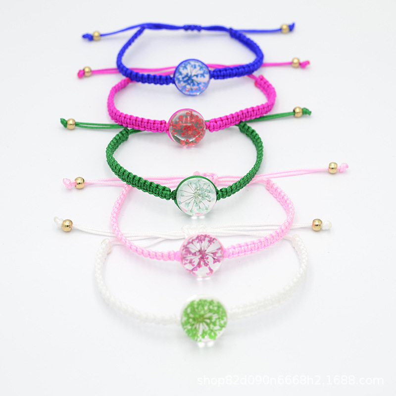 New Korean Style Natural True Flower Dried Flower Lace Flower Bracelet Hand-Woven Flat Knot Hand Rope Girls' Best Friend Jewelry