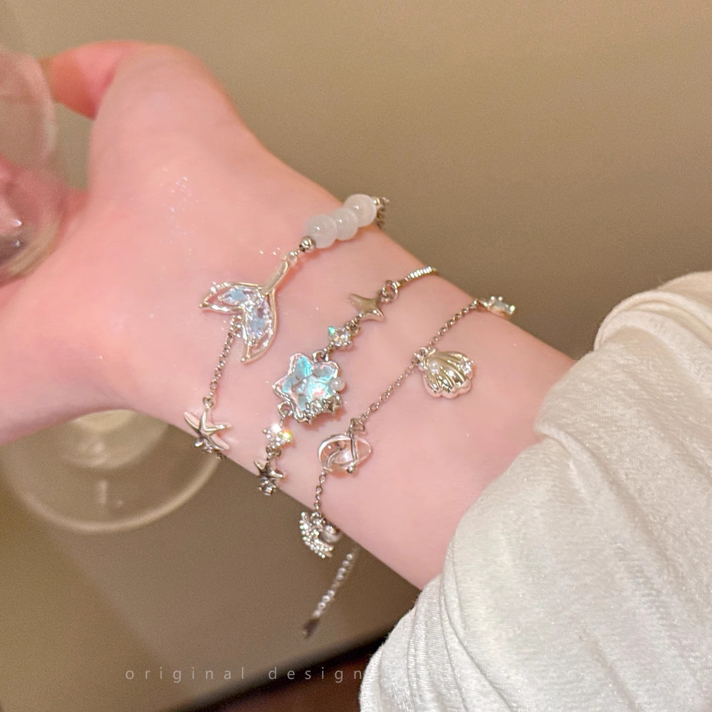Summer Starfish Shell Cat's Eye Pearl Bracelet for Girls, Cool and High-End Versatile Hand Jewelry, Niche Exquisite Accessories