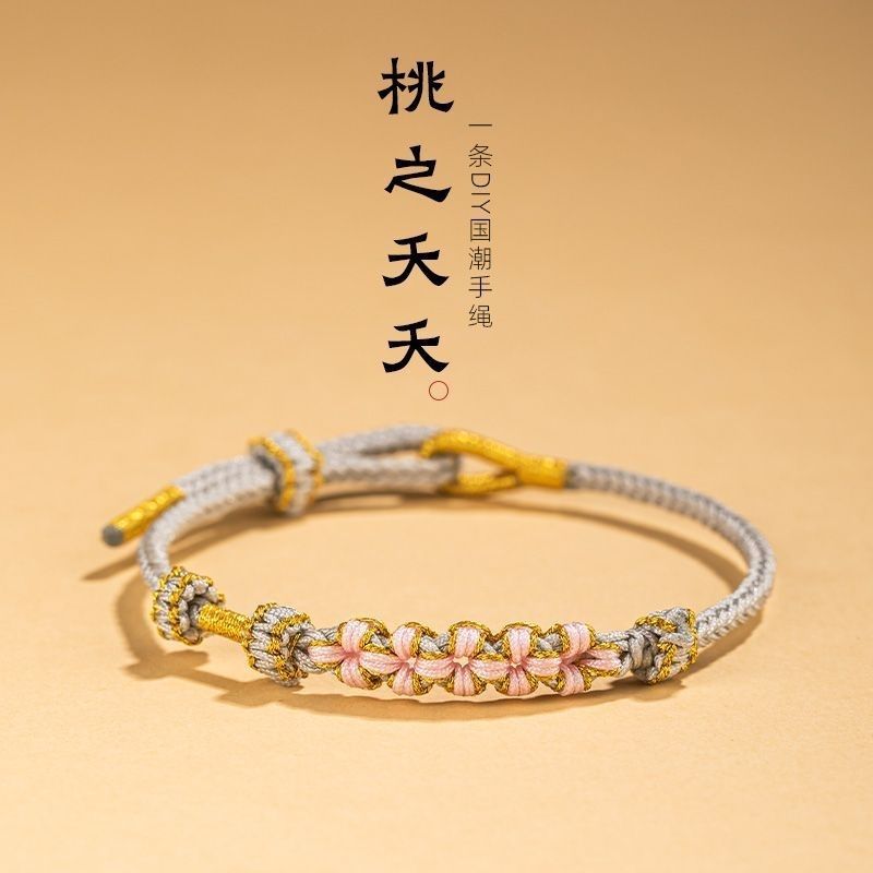Peach Blossom Bracelet for Women, Red String Handmade Woven Bracelet, Peach Blossom Knot Braided String, Can Be Strung with Gold Transfer Beads, Semi-Finished DIY