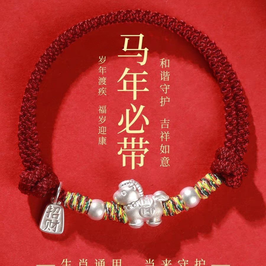 Immediately Succeed in Silver 999 Zodiac Pony 2026 Zodiac Year Red Rope Bracelet Women's Bracelet Auspicious Gift National Style