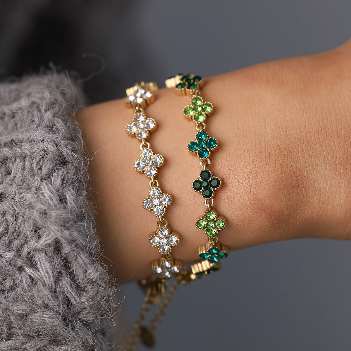 2025 Cross-Border New Jewelry Tennis Chain Bracelet Green Gradient Four-Flower Design Titanium Steel Bracelet for Women Wholesale