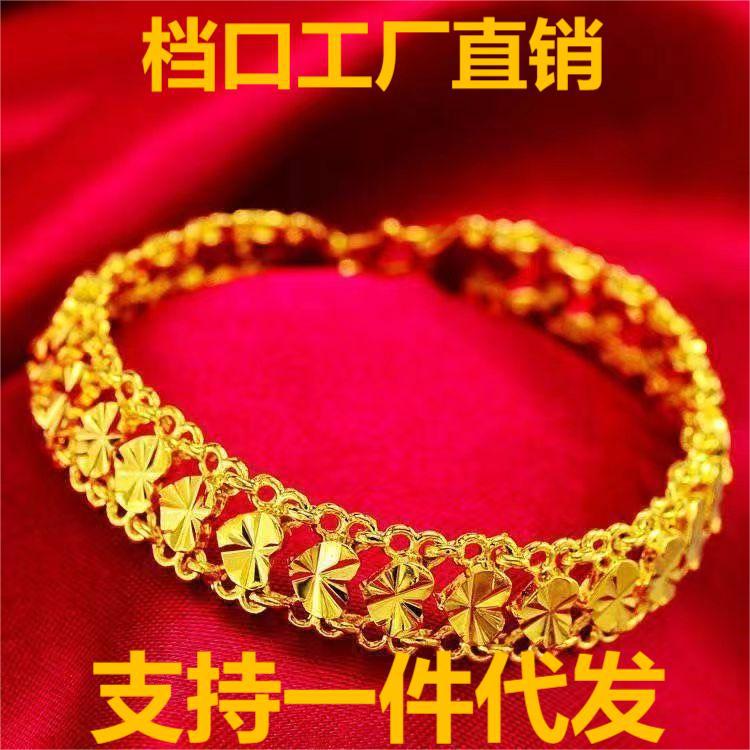 Live broadcast of Japanese and Korean Four Leaf Bracelet Wedding Vintage 24k Gold Plated Vietnamese Sand Gold Phoenix Eye Lucky Grass Bracelet for Women