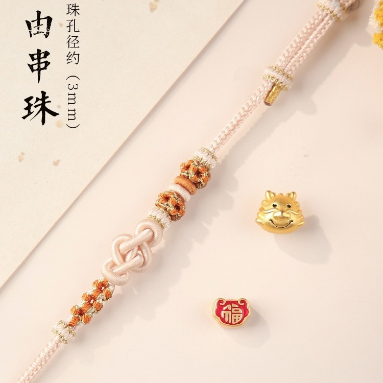 Ruyi Peach Blossom Knot Hand Rope Red Rope Bracelet Hand-Woven Finished Product Wearable Gold Bead Braided Rope Girls Ethnic Style