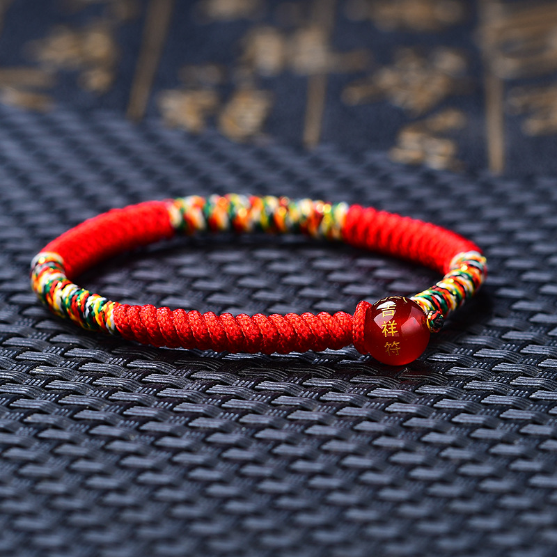 Natural Red Agate Safety Sign Auspicious Charm Diamond Knot Red Rope Bracelet for Women's Birthday Year Nine by Diamond Knot Hand Link
