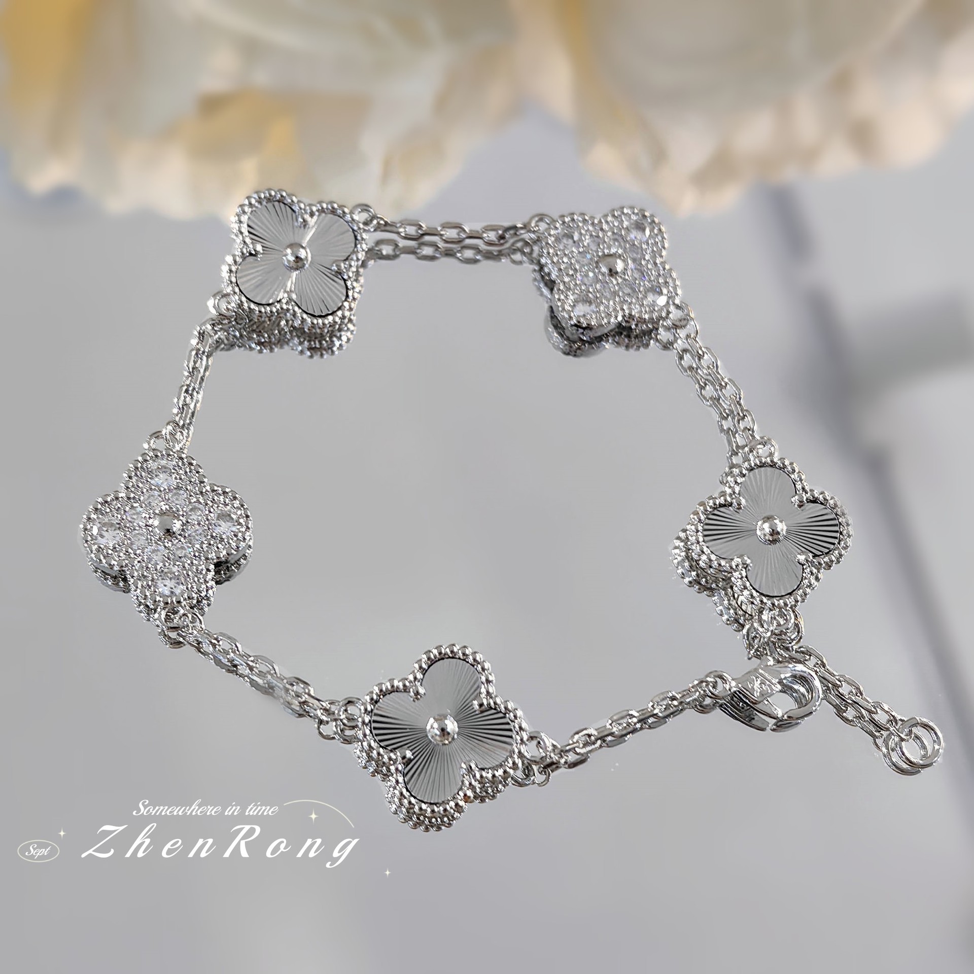 CNC High Version Laser Five-flower Four-leaf Clover Bracelet Instagram Style Niche Light Luxury High-grade Kaleidoscope Diamond Bracelet for Women