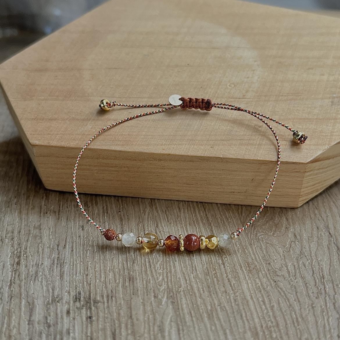 Fortune Sandstone Citrine Bracelet Bracelet Niche Original Accessible Luxury Exquisite Ancient Silver Ethnic Bestie Braided Women