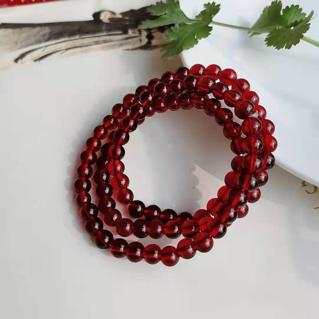 Hot-Selling Popular Burgundy 6mm Imitation Garnet Bracelet Wrapped Around Three Circles Garnet Women's Bracelet Street Stall Live Broadcast Event