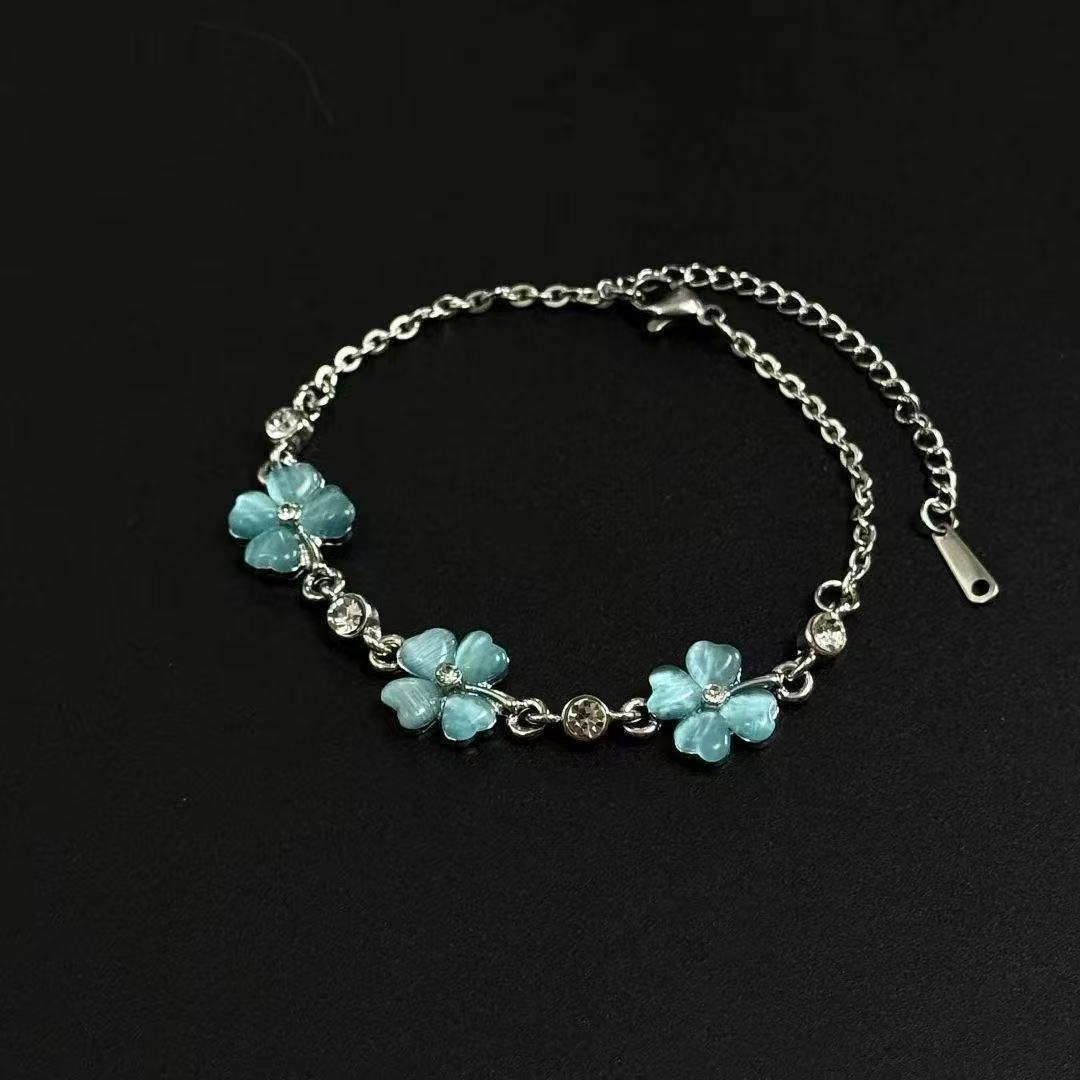 New Blue Cat's Eye Lucky Four-Leaf Clover Bracelet for Women, High-End, Exquisite, Versatile, Niche and Unique Design