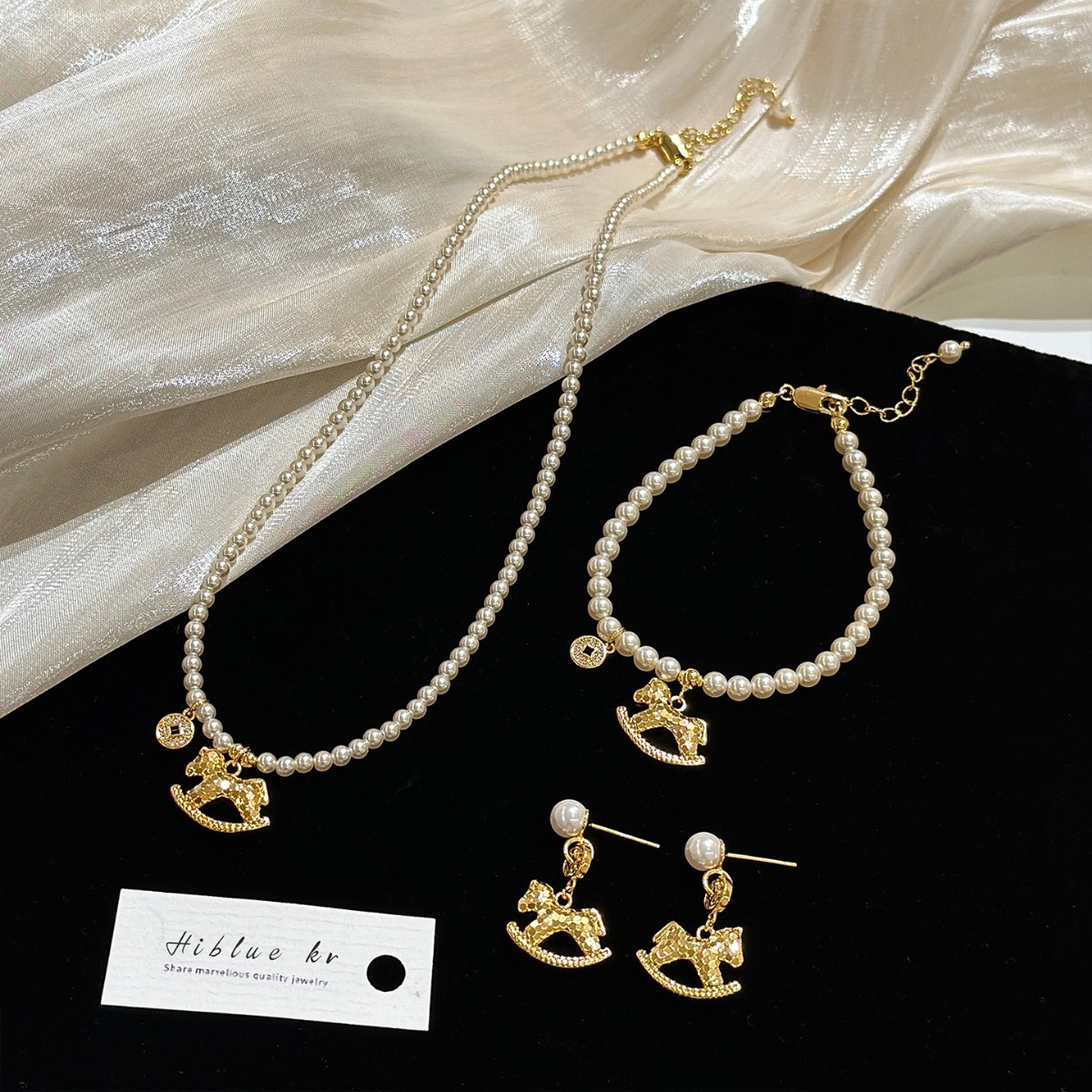 French Retro Style Personality Crushed Ice Pony Pendant Coin Pearl Bracelet for Women Autumn and Winter Light Luxury Exquisite Bracelet