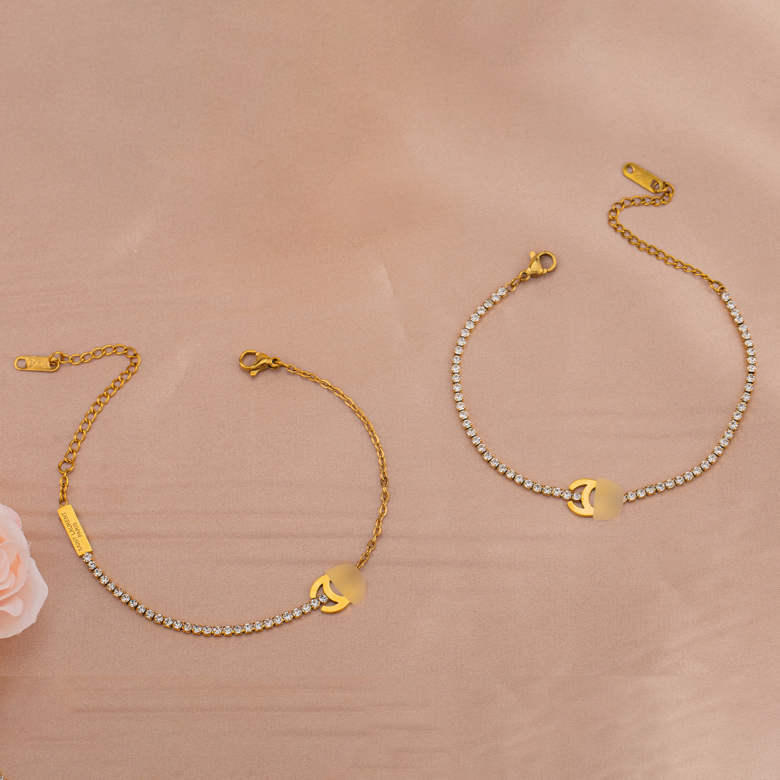 Fashionable European and American Accessible Luxury Style Simple Elegant Diamond-Encrusted Double C Stitching Bracelet Women's High-End Titanium Steel Non-Fading Bracelet